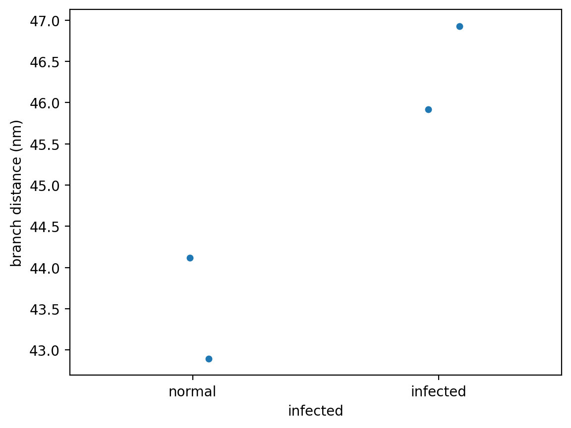 Now we can use Python’s data analysis tools to answer a scientific question: do malaria-infected red blood cells differ in their spectrin skeleton?